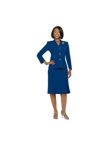 Upgrade your work wardrobe with this Piping Accented Three Button Jacket Skirt Suit. Crafted from Poly-Spandex mix blend, this outfit comes with a three button closure jacket that has a V-cut neck and a skirt with accent piping and pleated front. Available in different colour options – White, Black, Off-white, Taupe, Royal; this outfit is perfect for any business meeting or any special events. Tailored in sizes 12-30, the jacket length of this outfit is 25” where the skirt length is 28”. Pair this outfit with heels for a professional look.